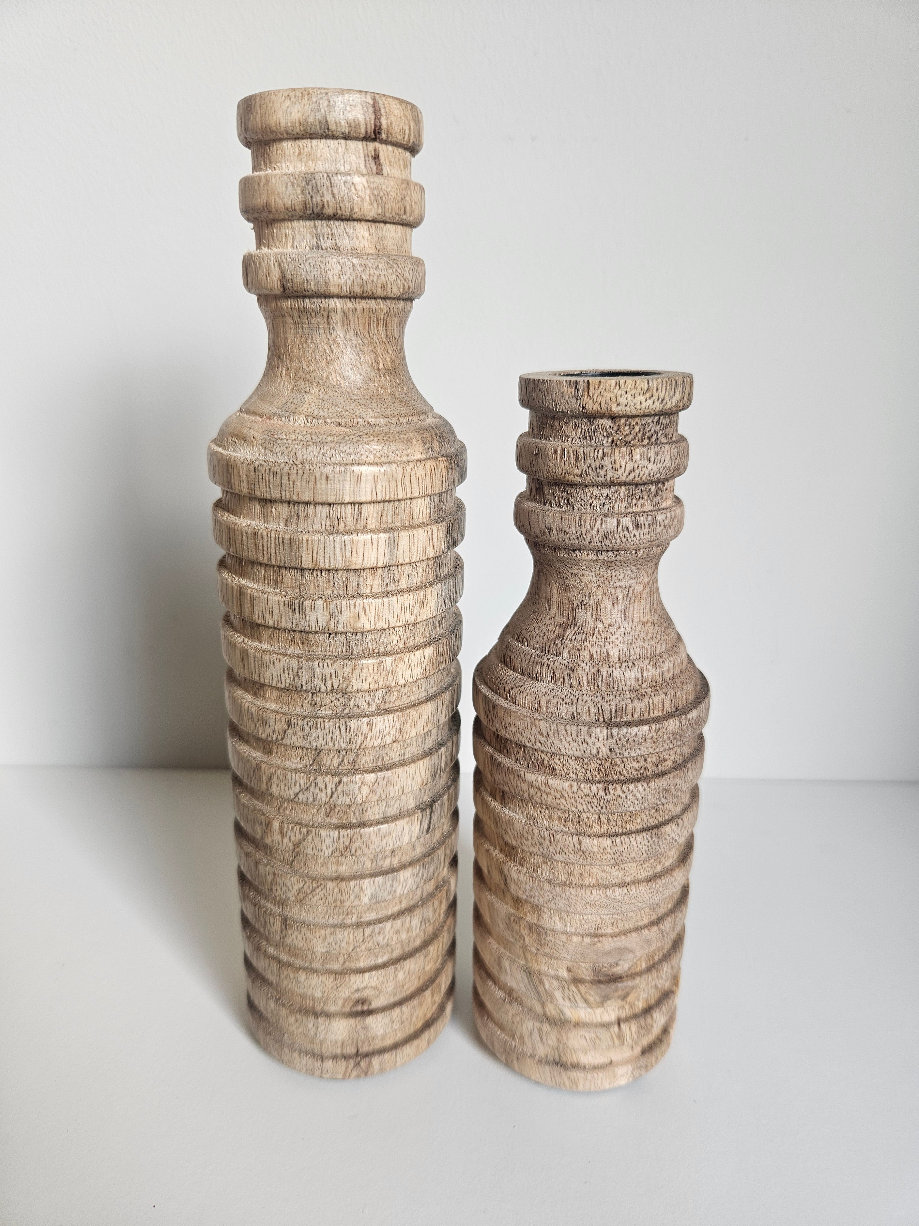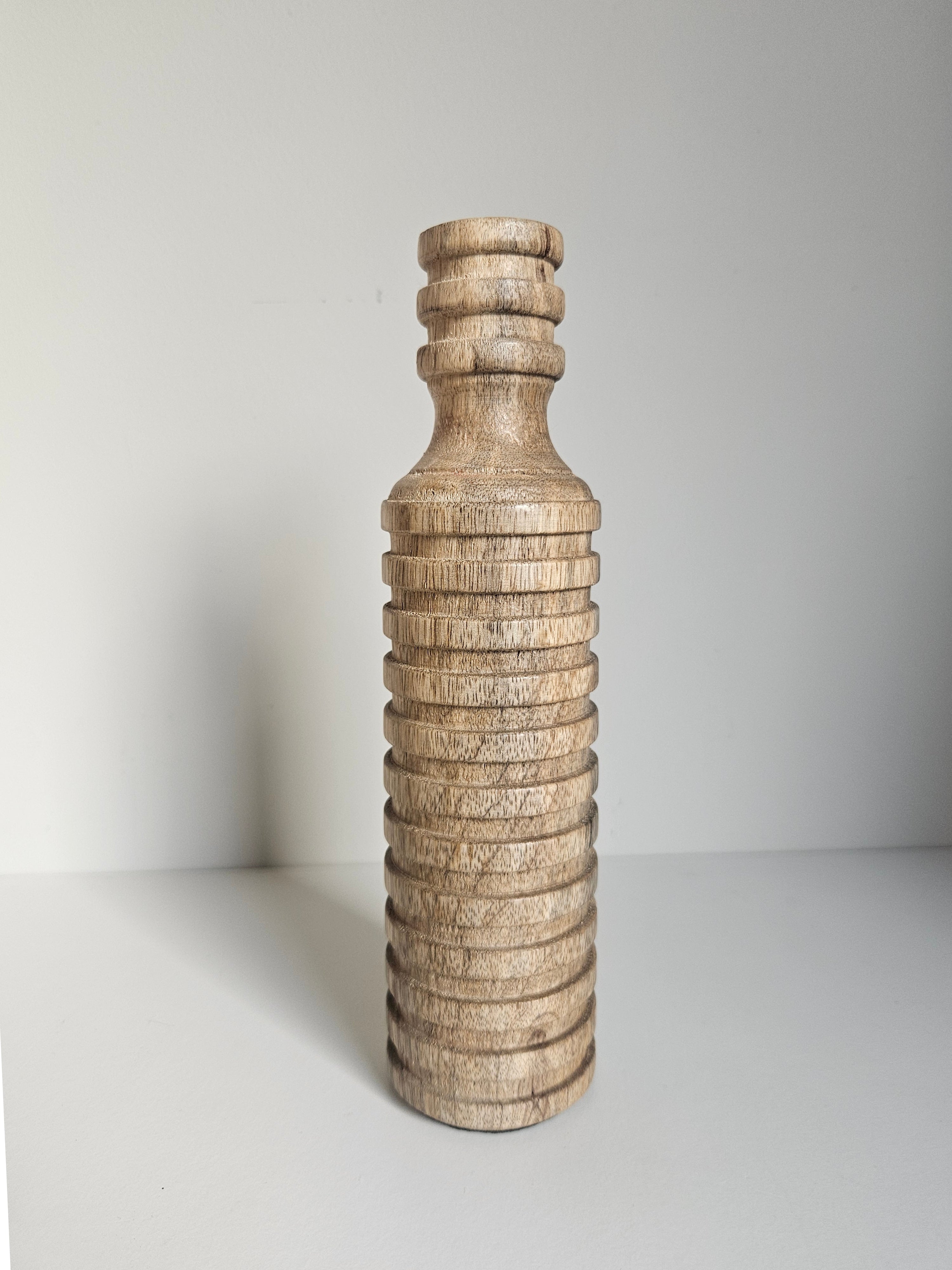 Kandelaar Geribbeld Lichtbruin Hout - H 23 cm