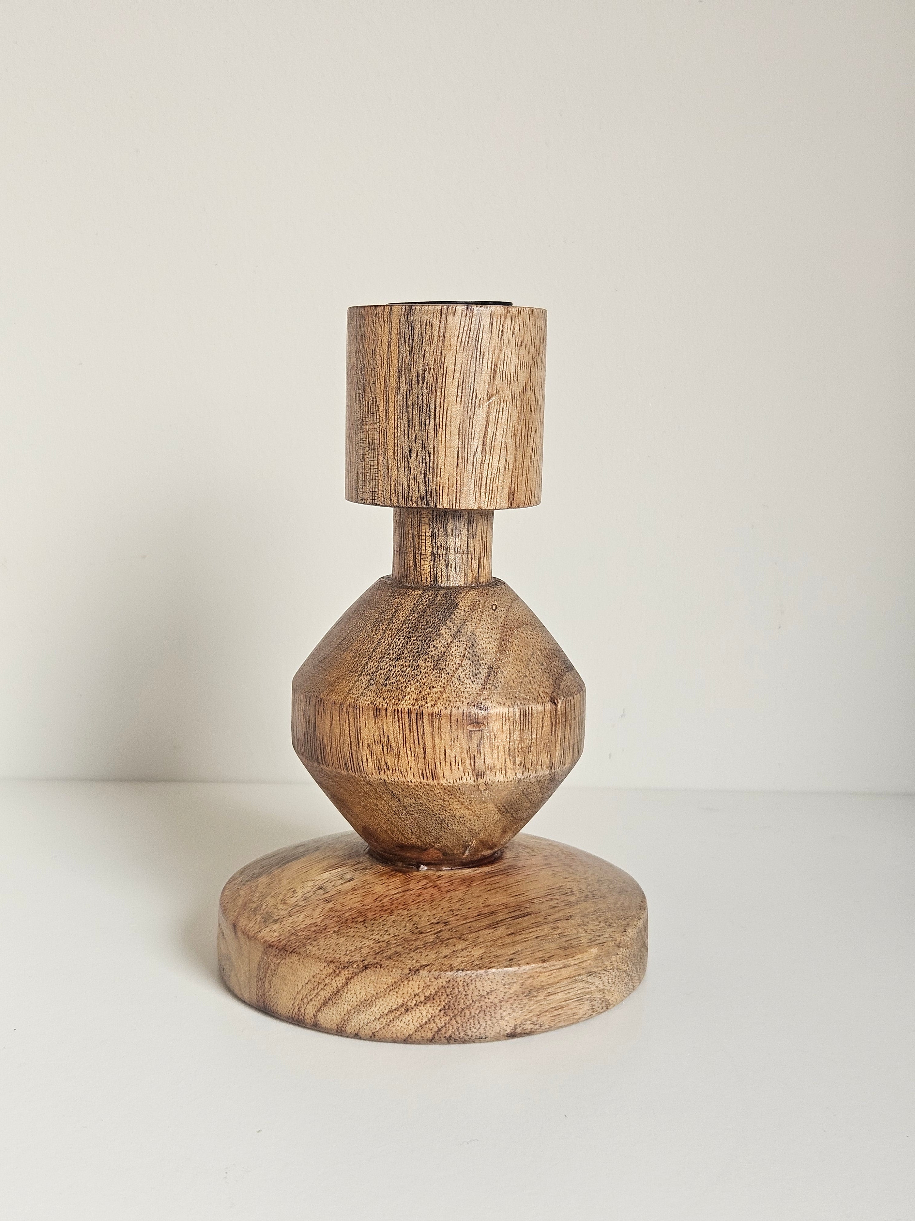 Kandelaar Hout Naturel - H 15 x Ø 10 cm