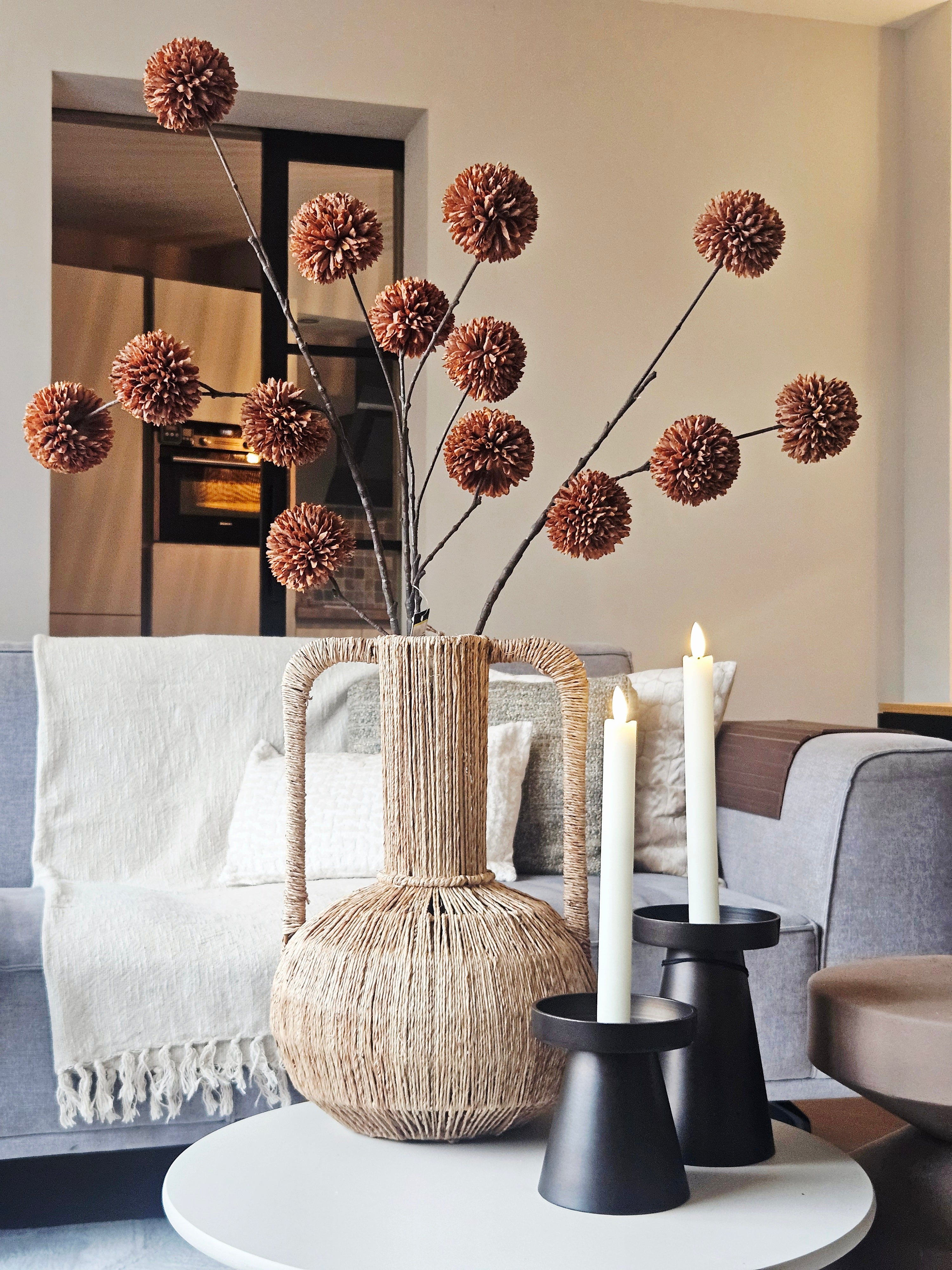 Kunstbloem Chrysanthemum Pompom Bruin - 98 cm