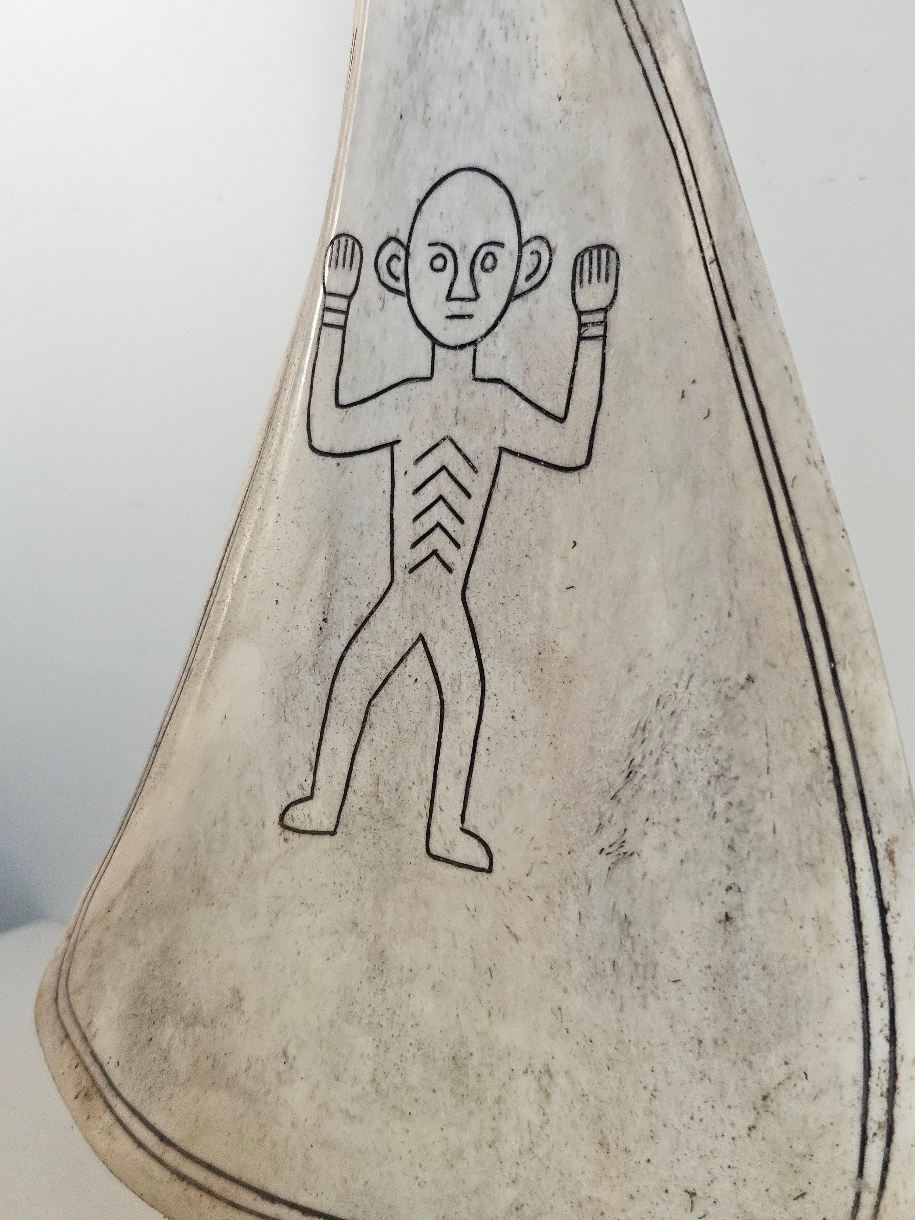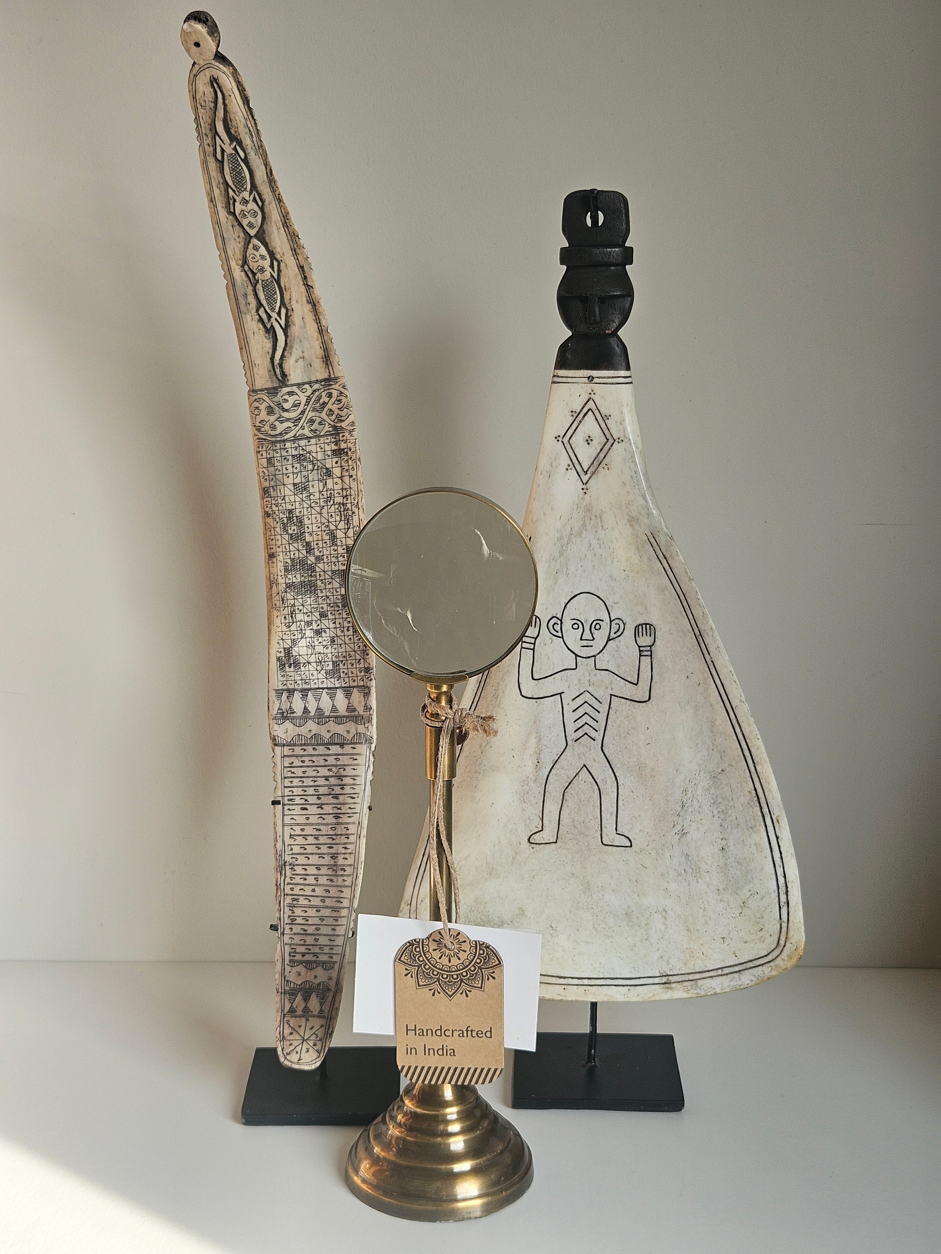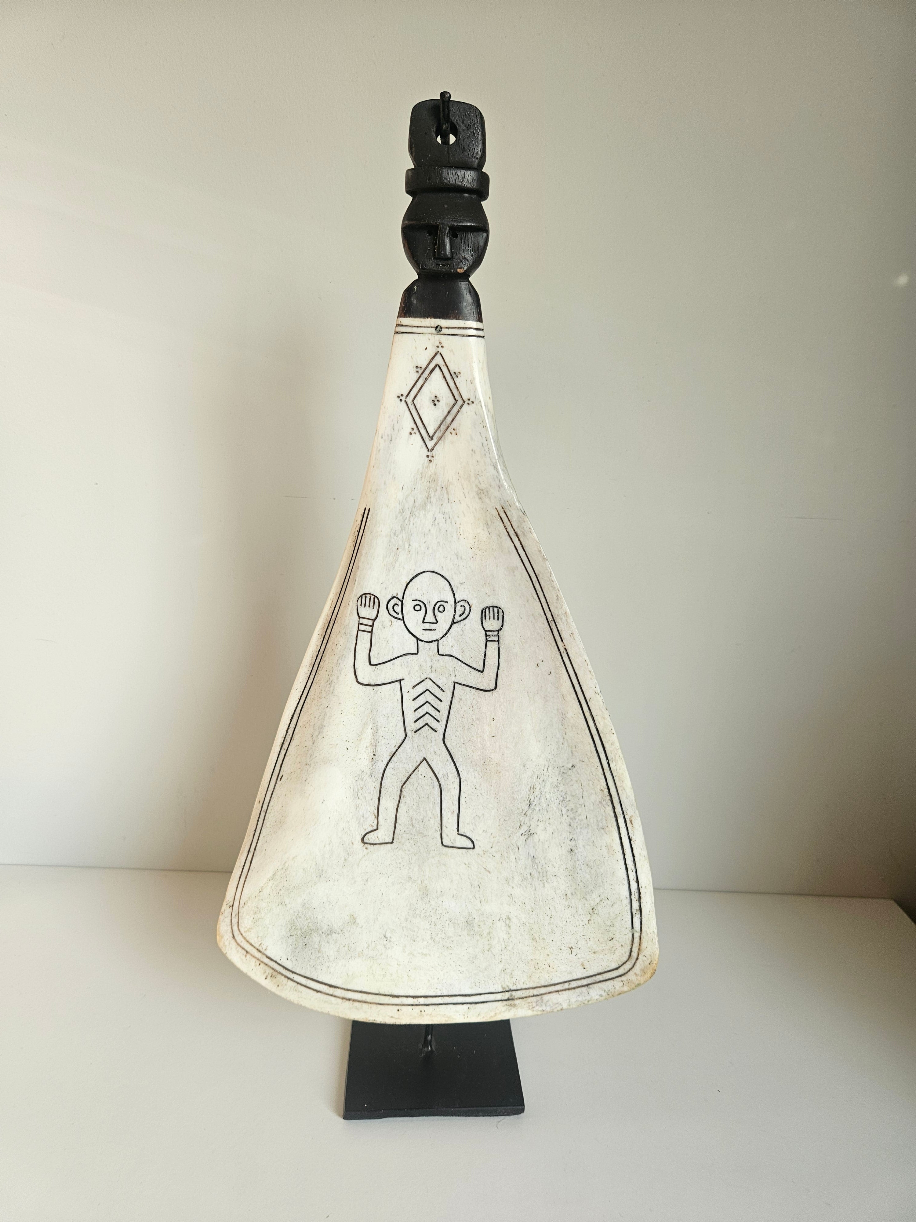 Ornament Lepel op Voet met Figuur Wit Naturel - 18 x 40 cm