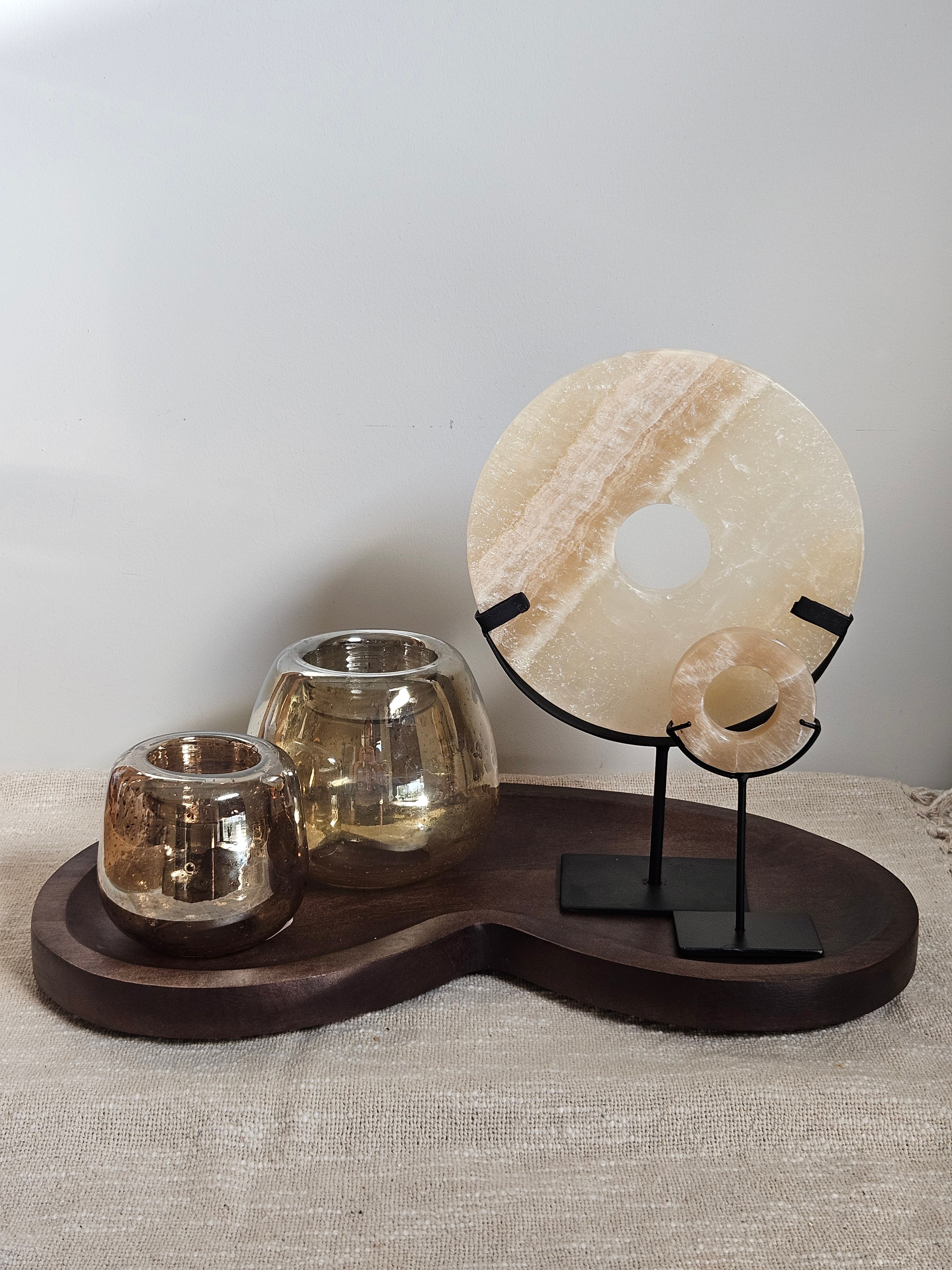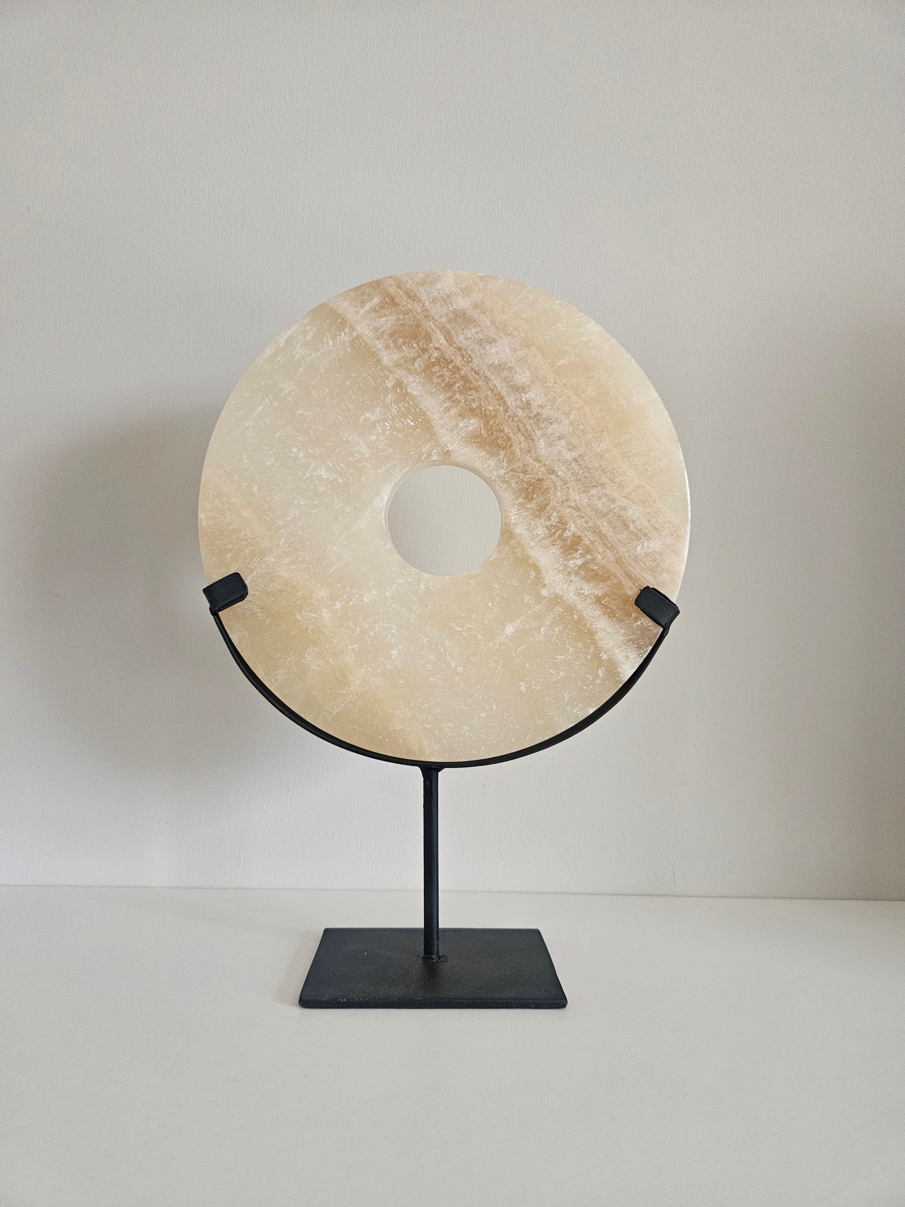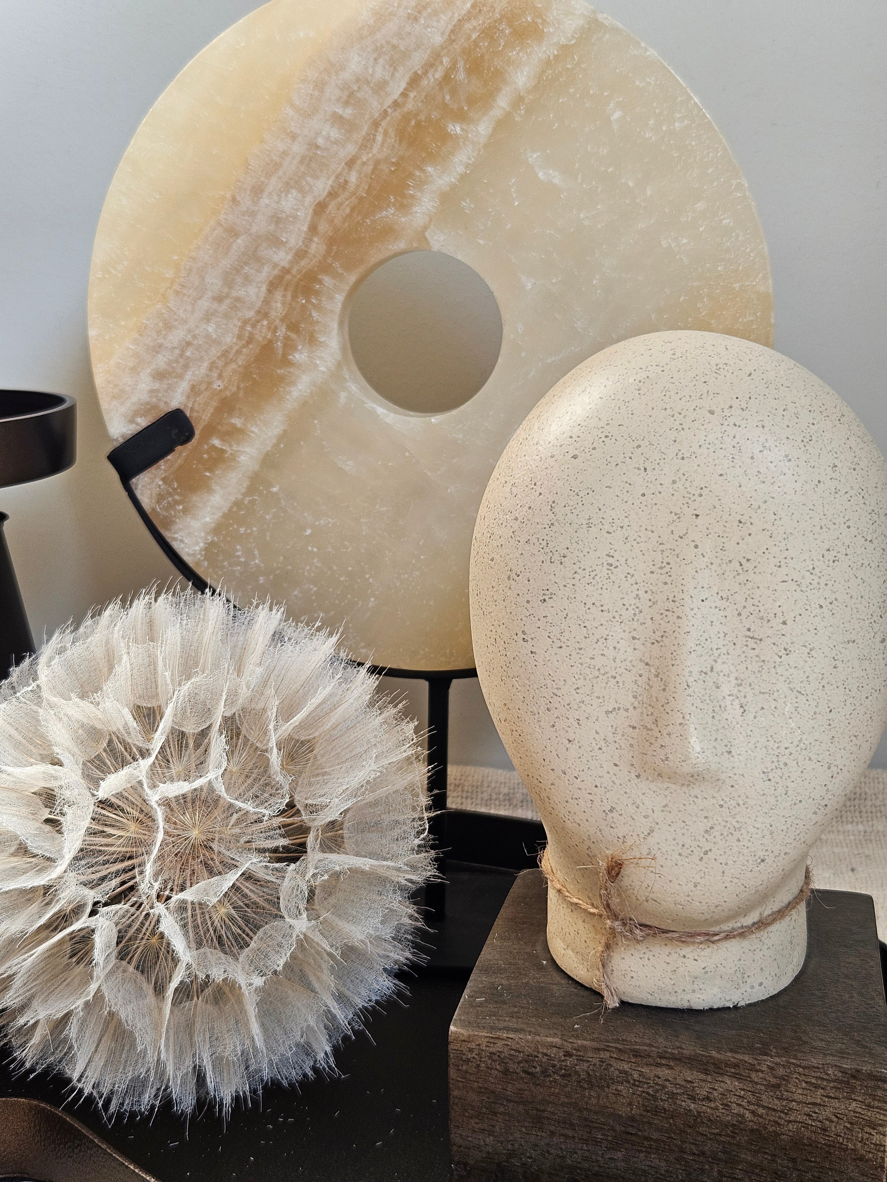 Ornament Onyx op Voet Beige Natuursteen - Ø 20 x H 28 cm