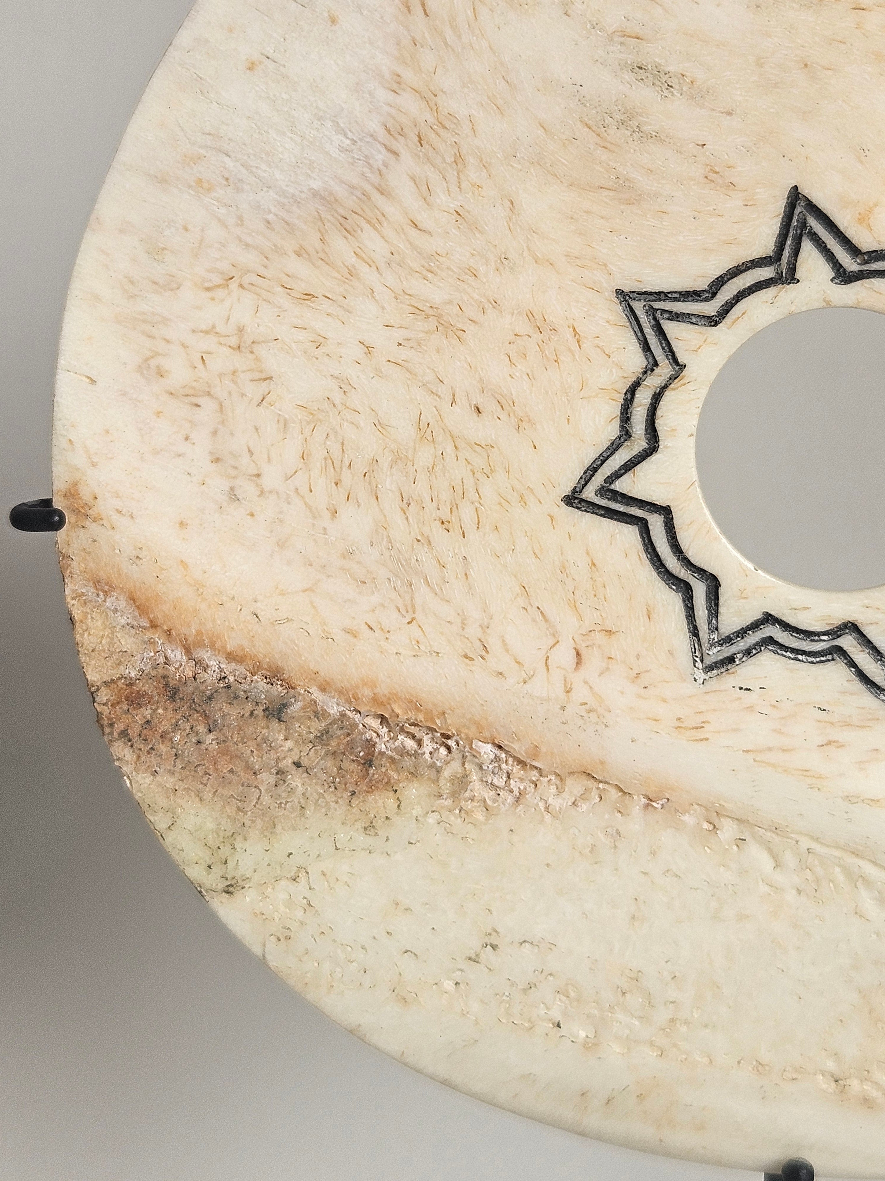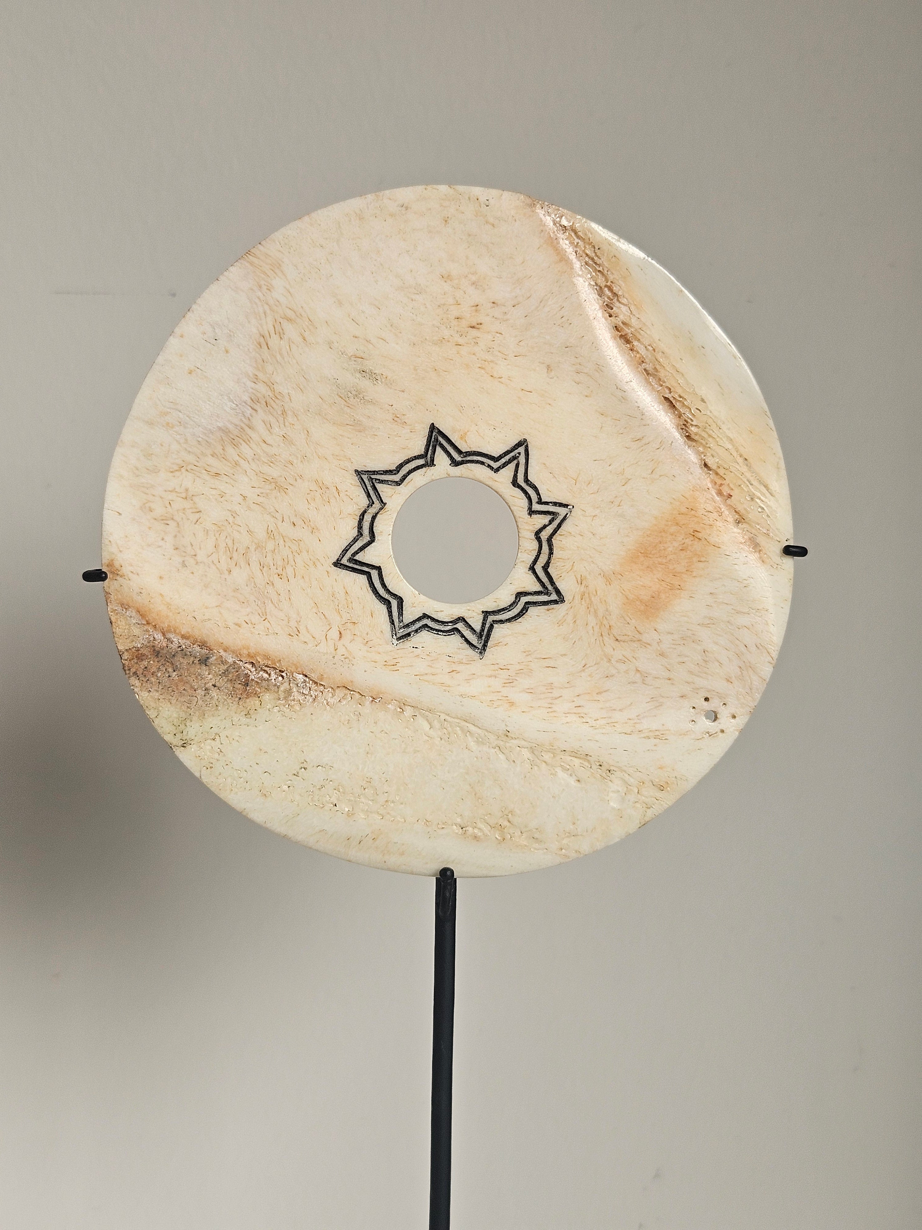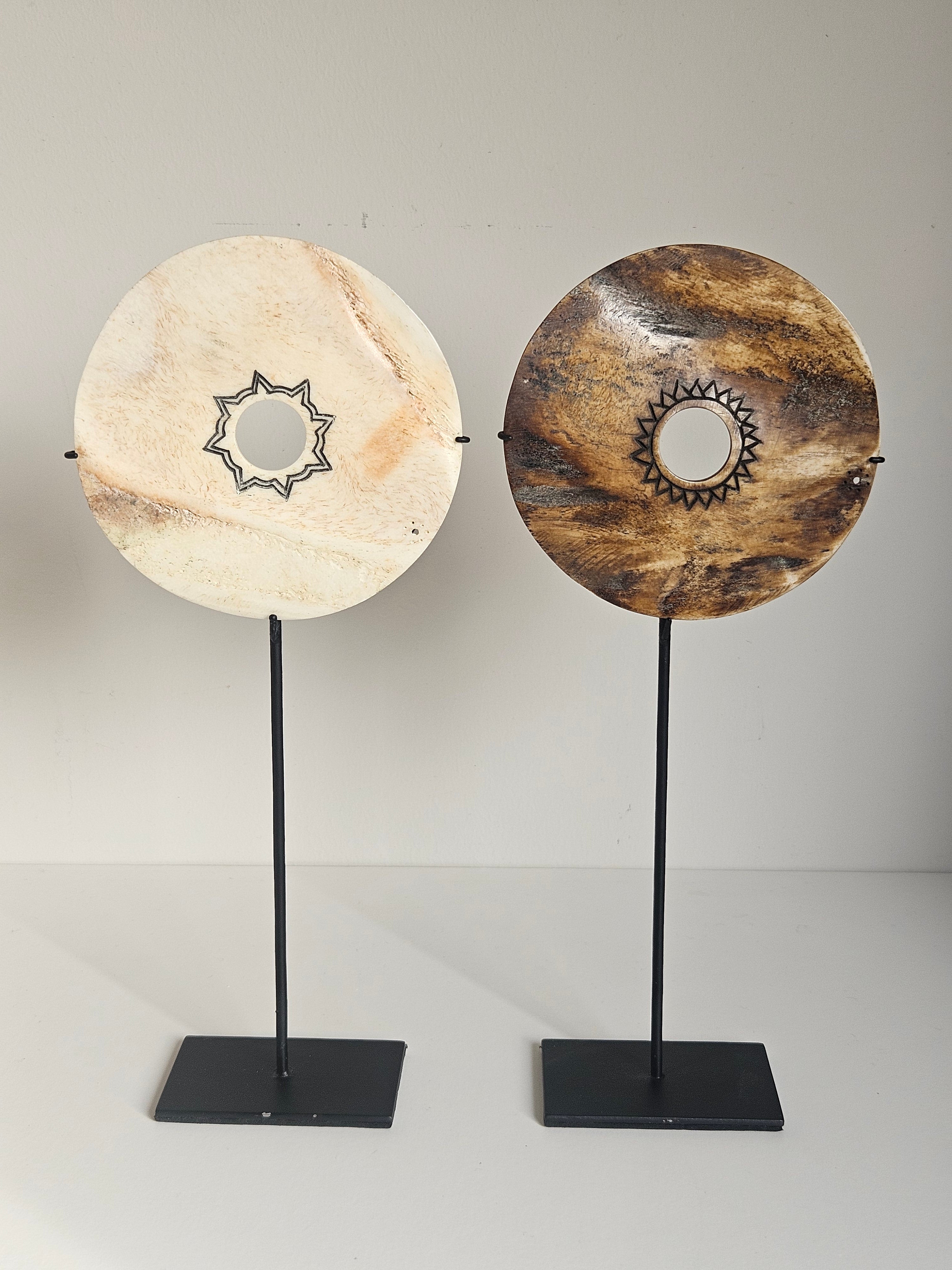 Ornament Schijf op Voet Creme Naturel - Ø 11 x H 26 cm