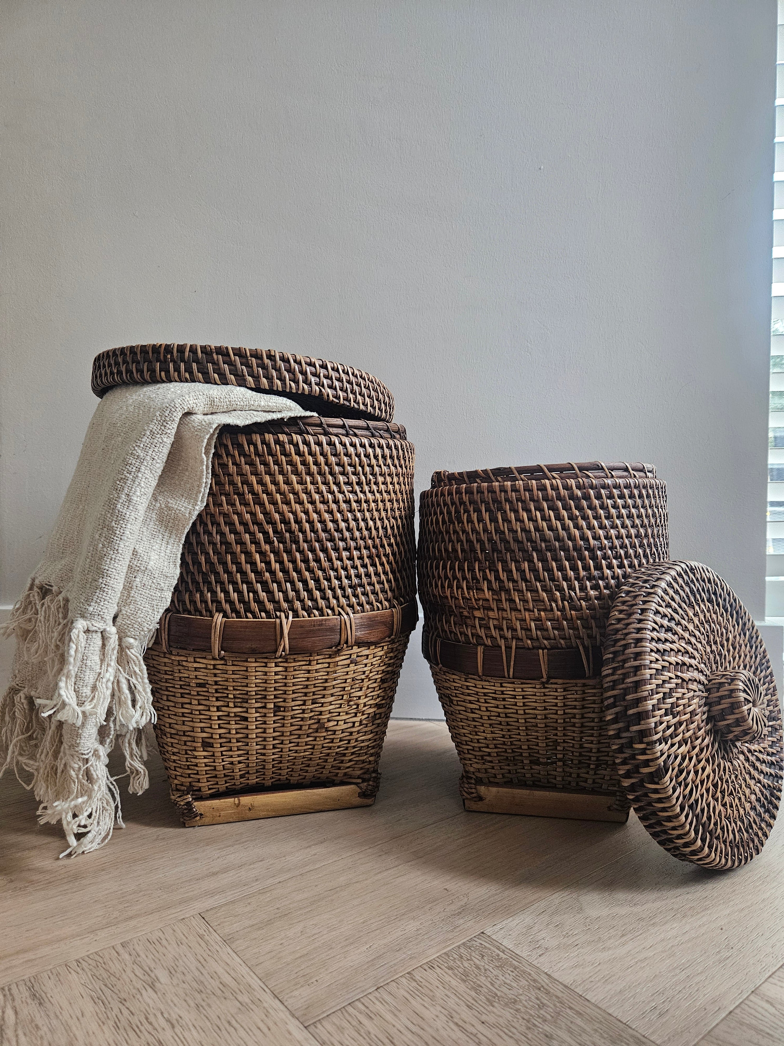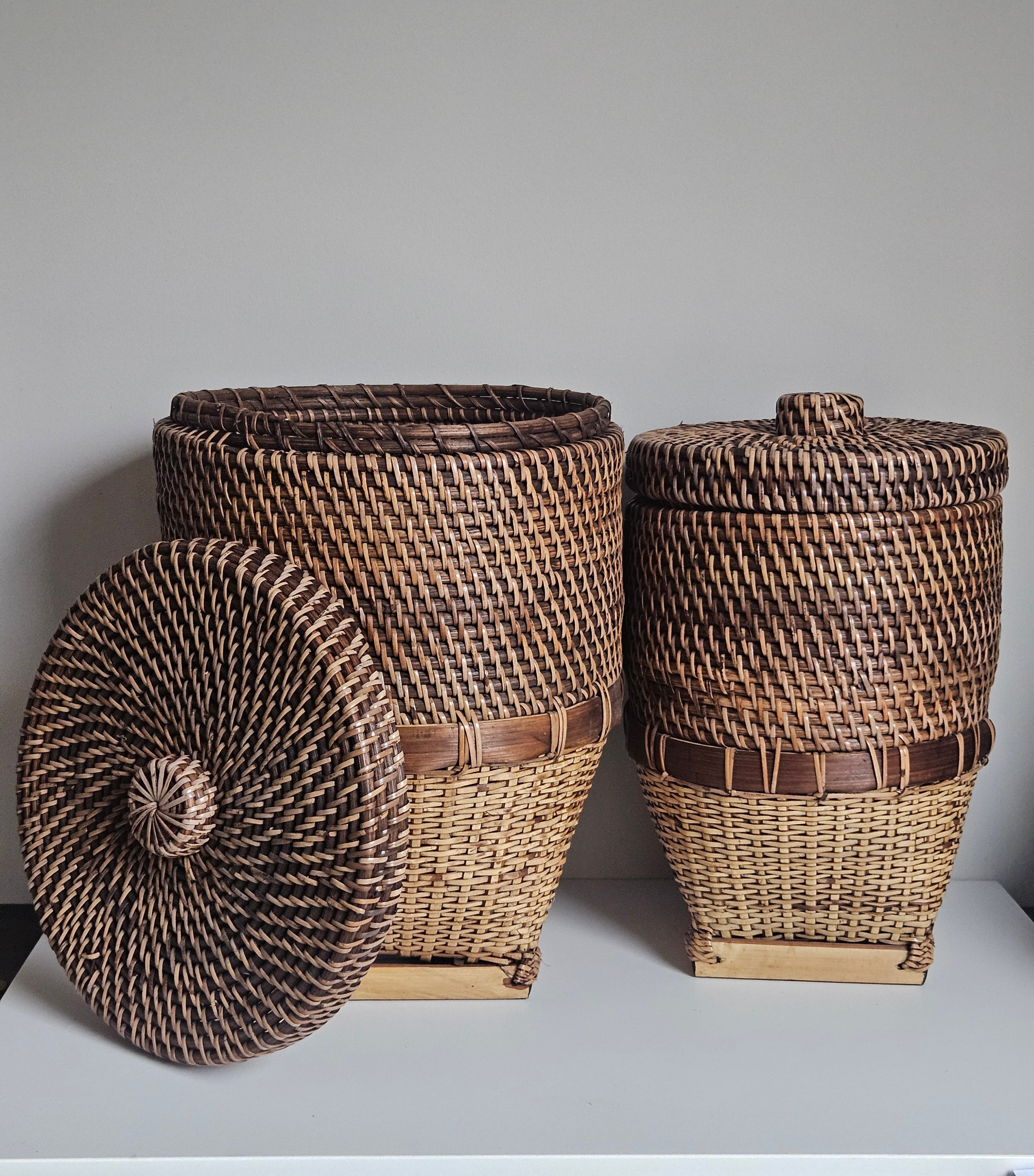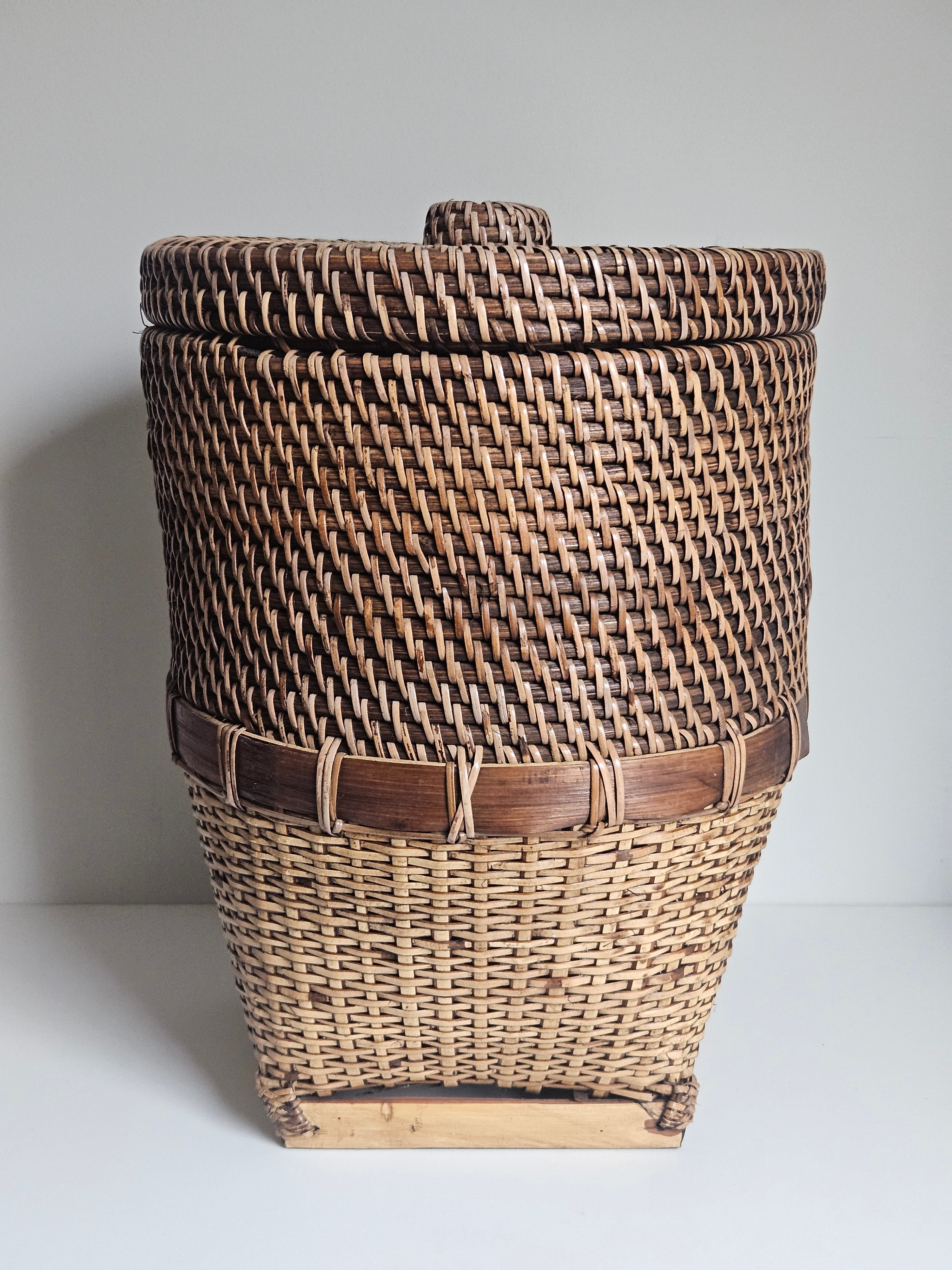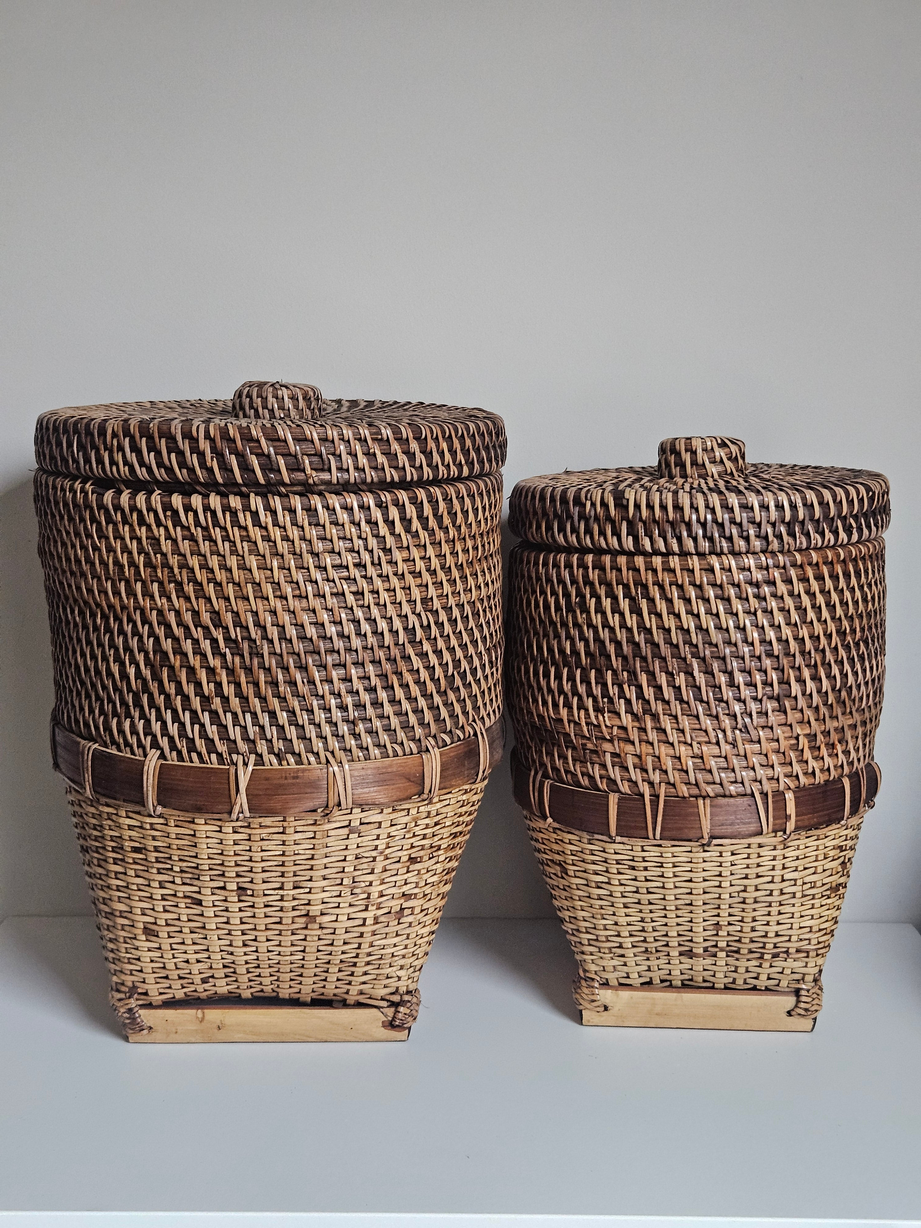 Rieten Opbergmand met Deksel Bruin Naturel Handgemaakt - Ø 26 x H 35 cm