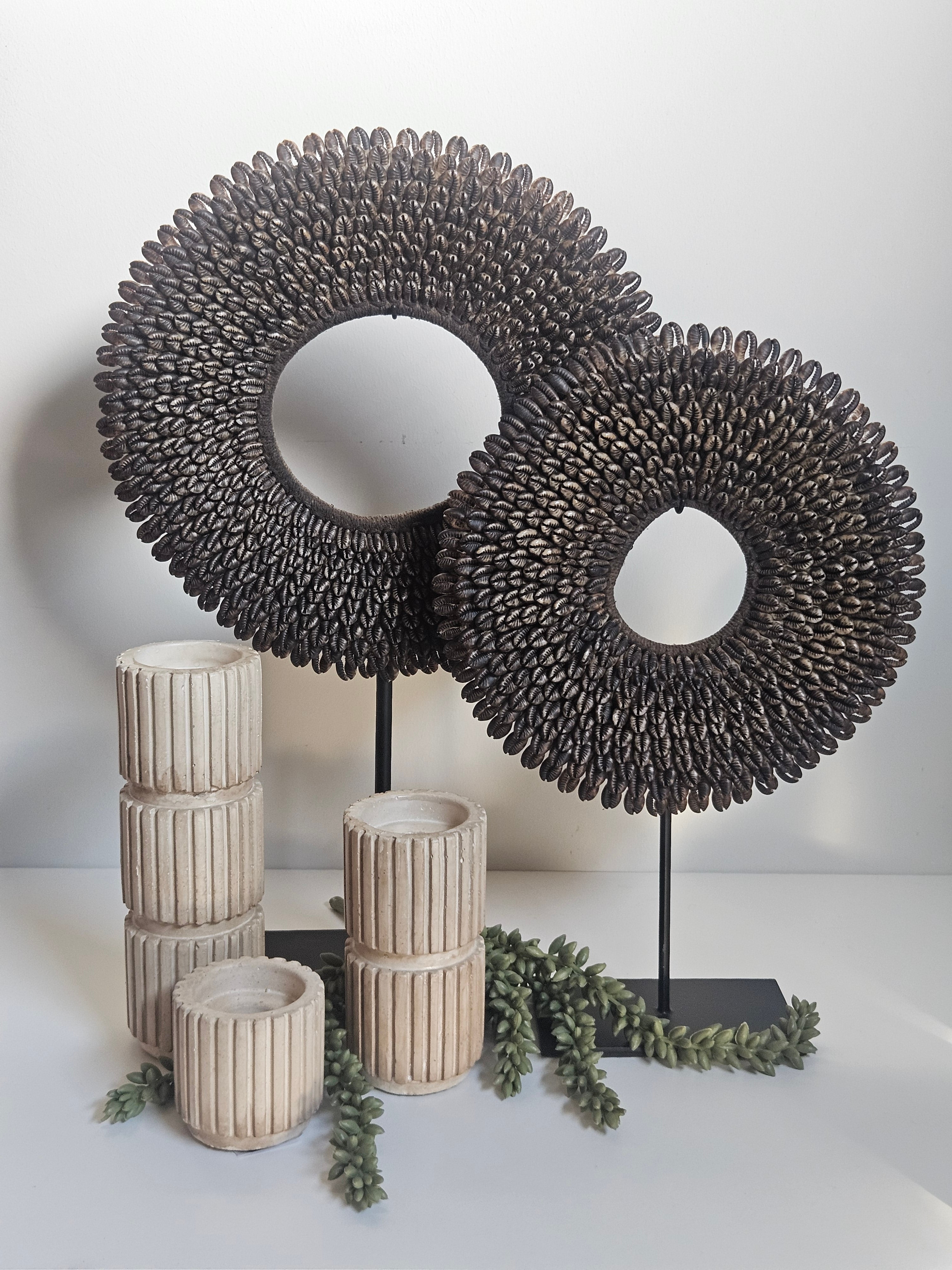 Schelpenketting Op Standaard Antiek Look Donker - Ø 26 x H 40 cm