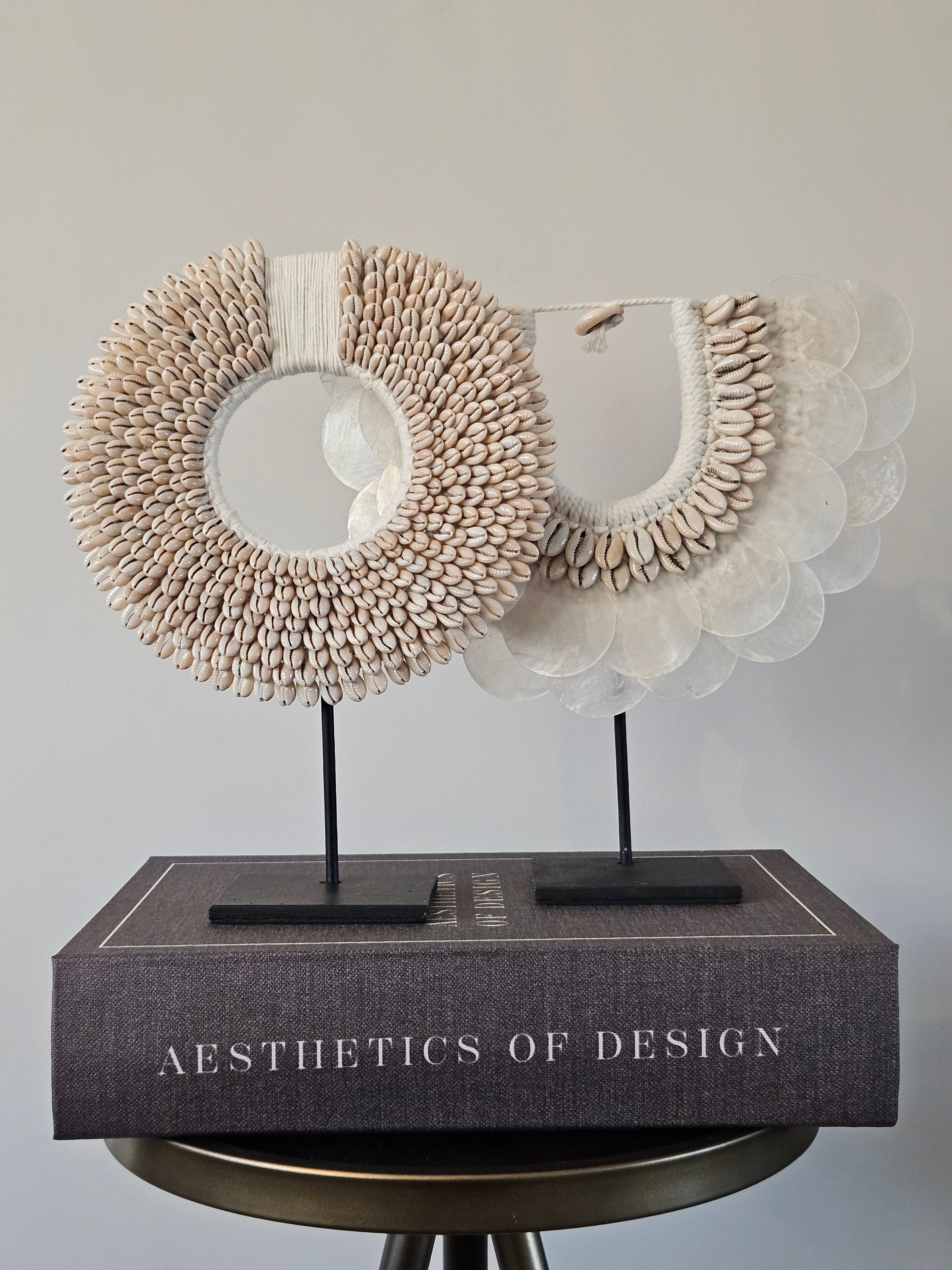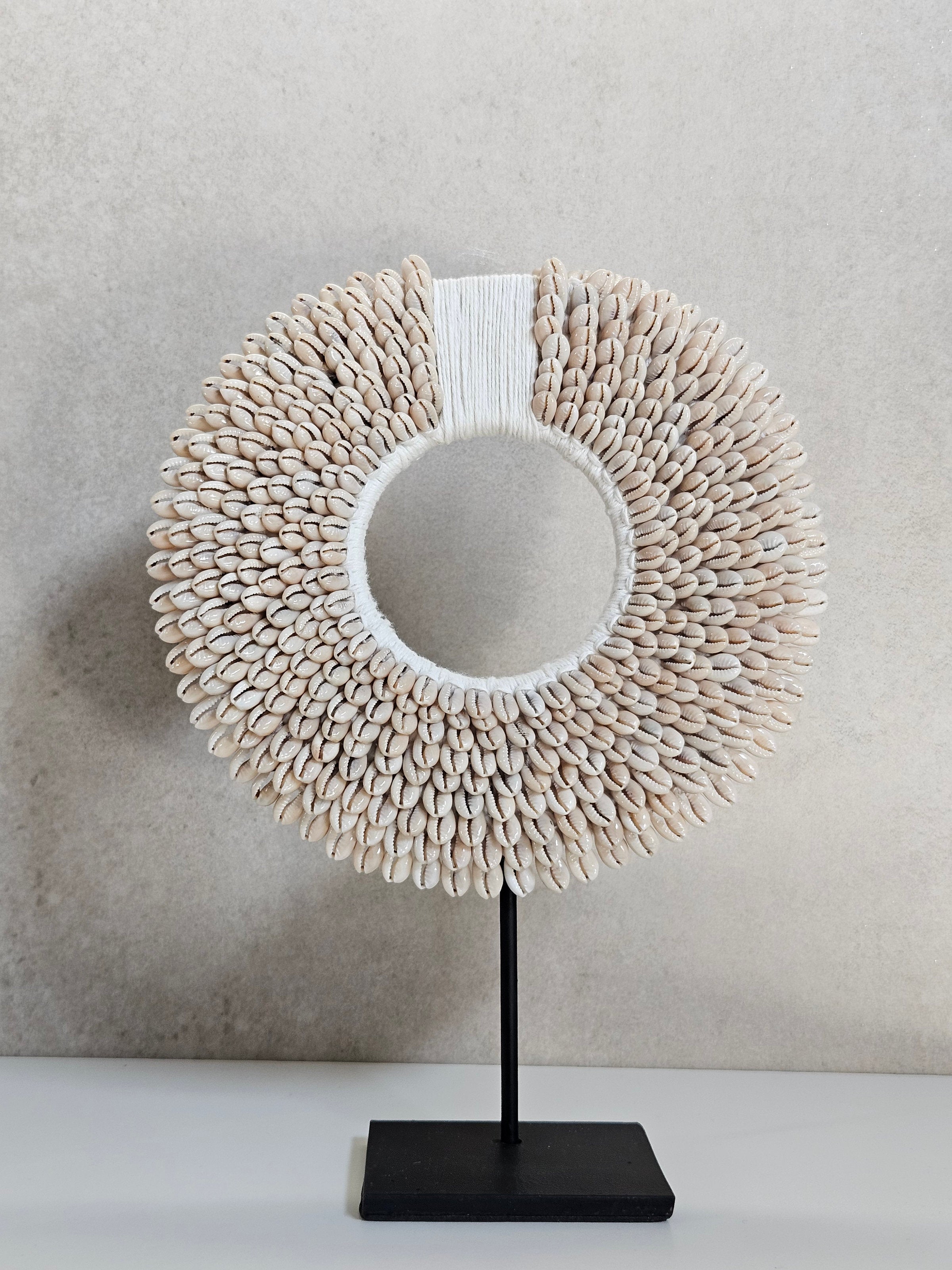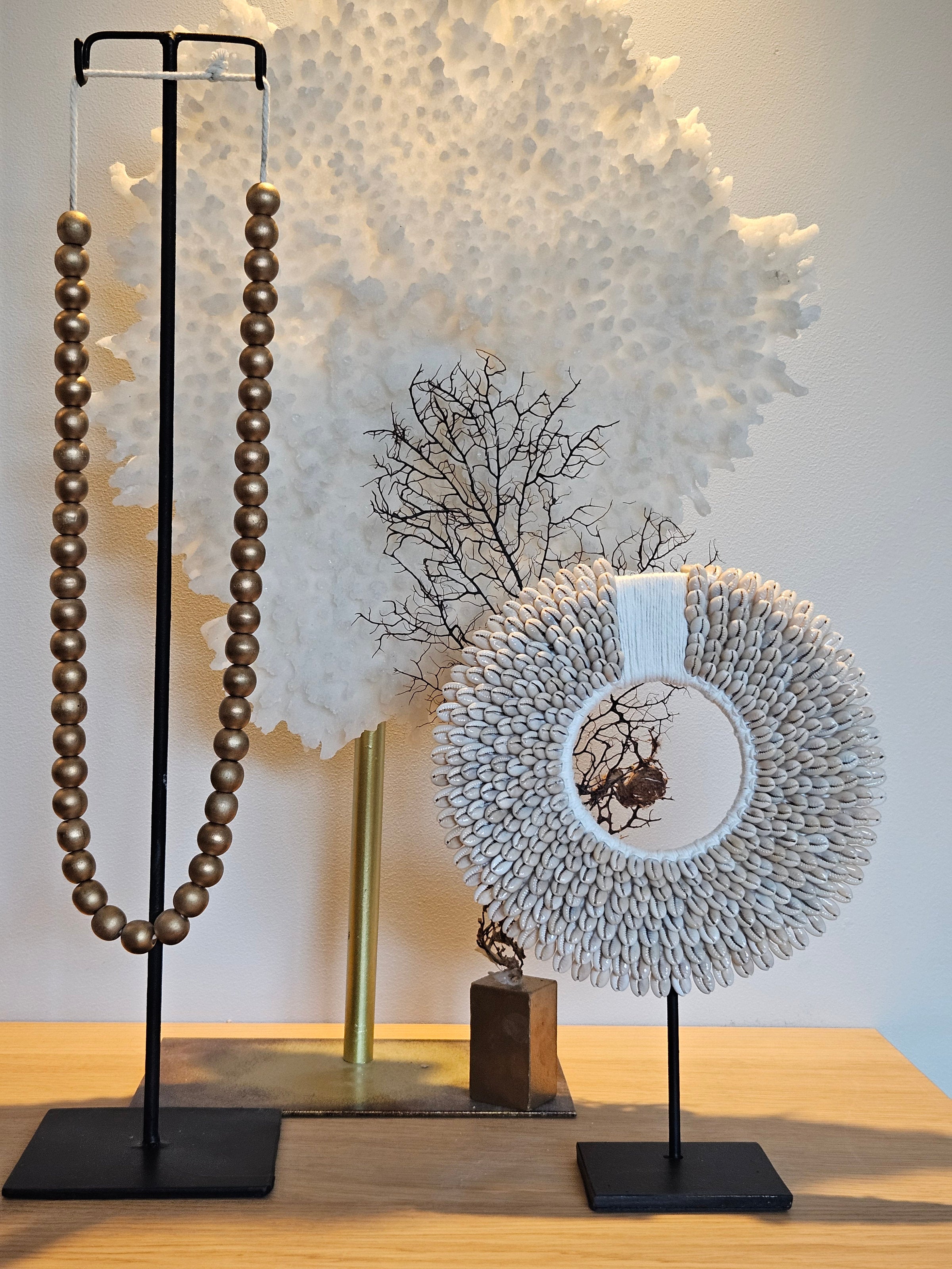 Schelpenketting Op Standaard Wit Ø22 x H28 cm