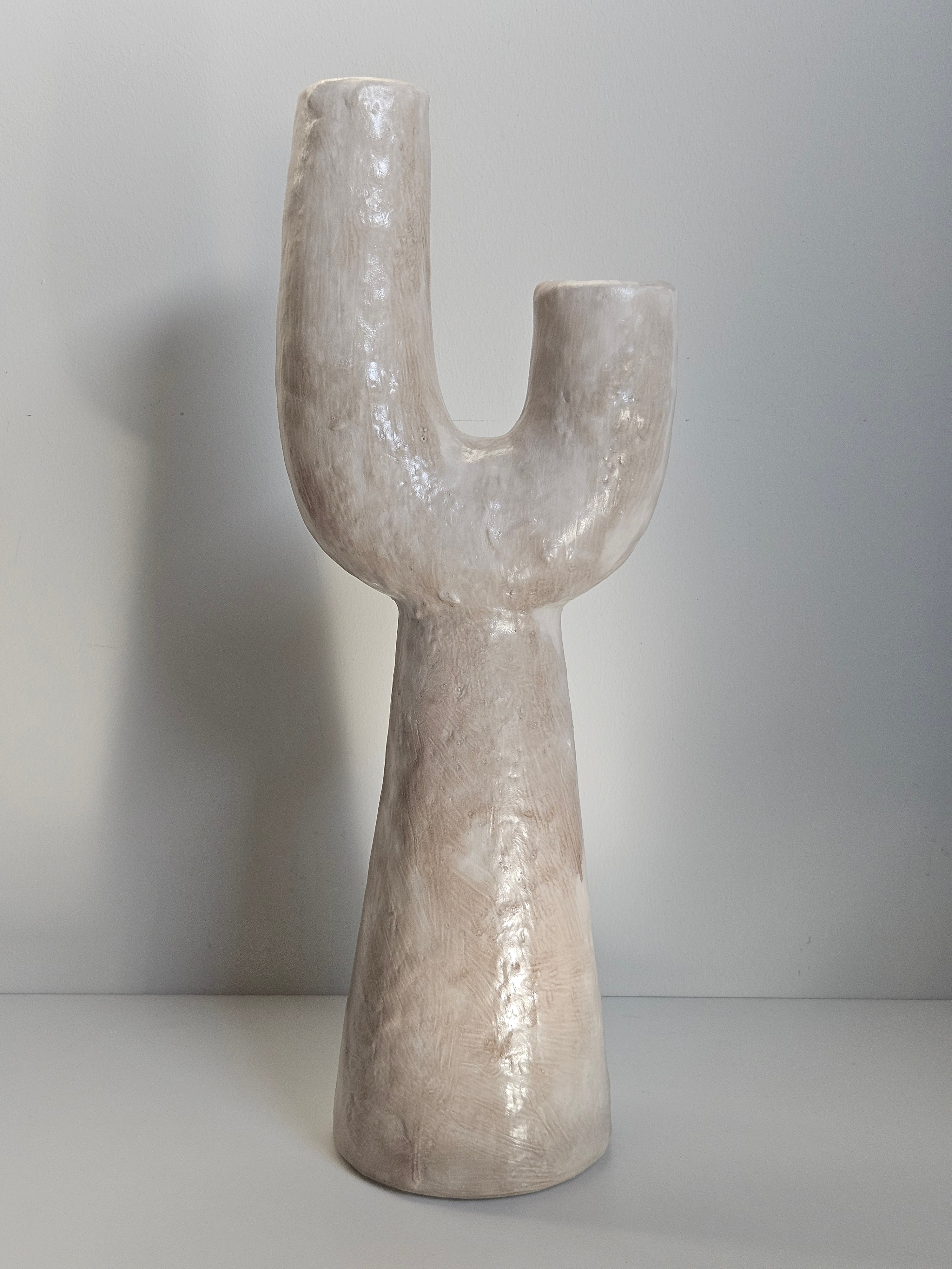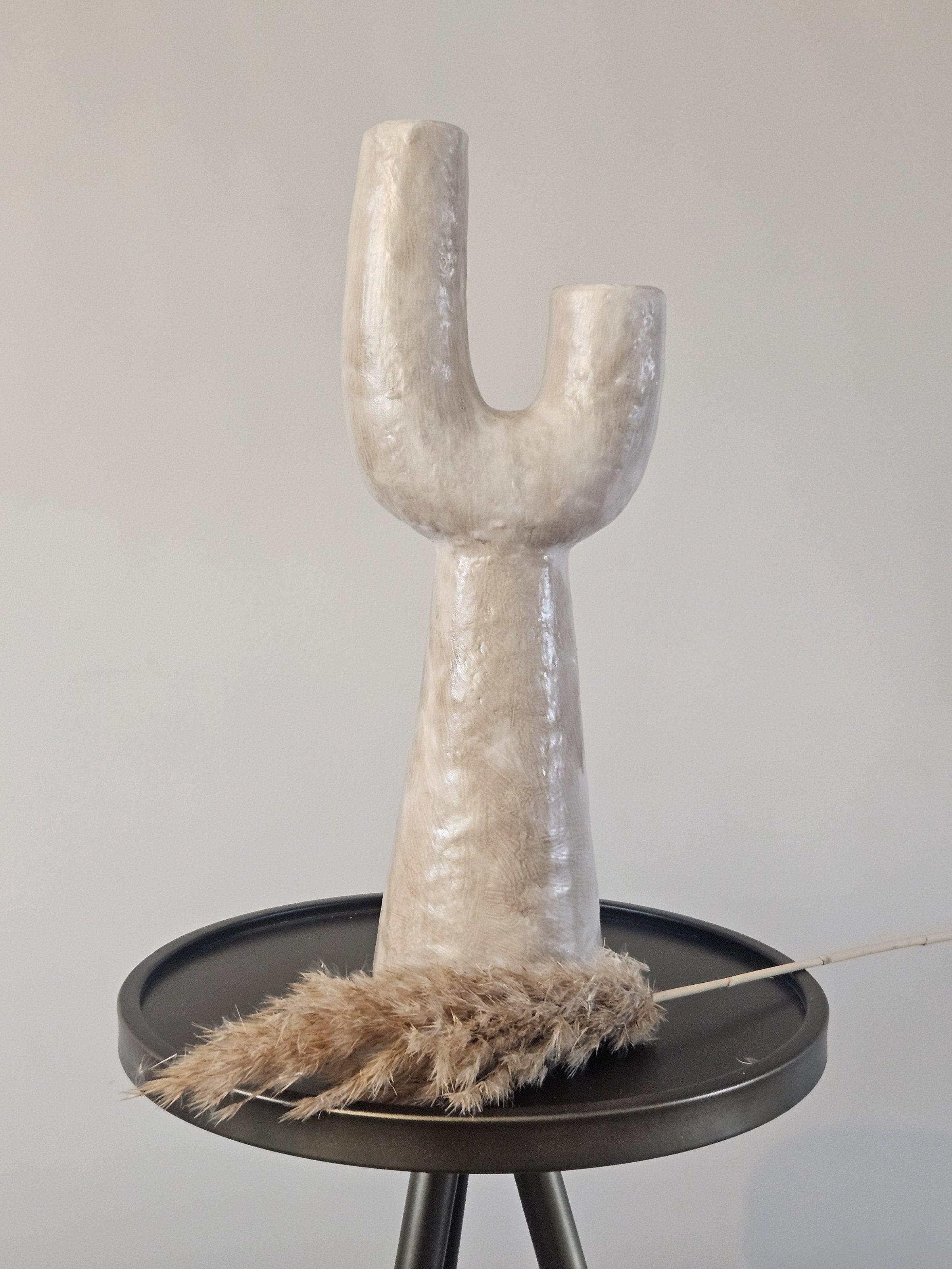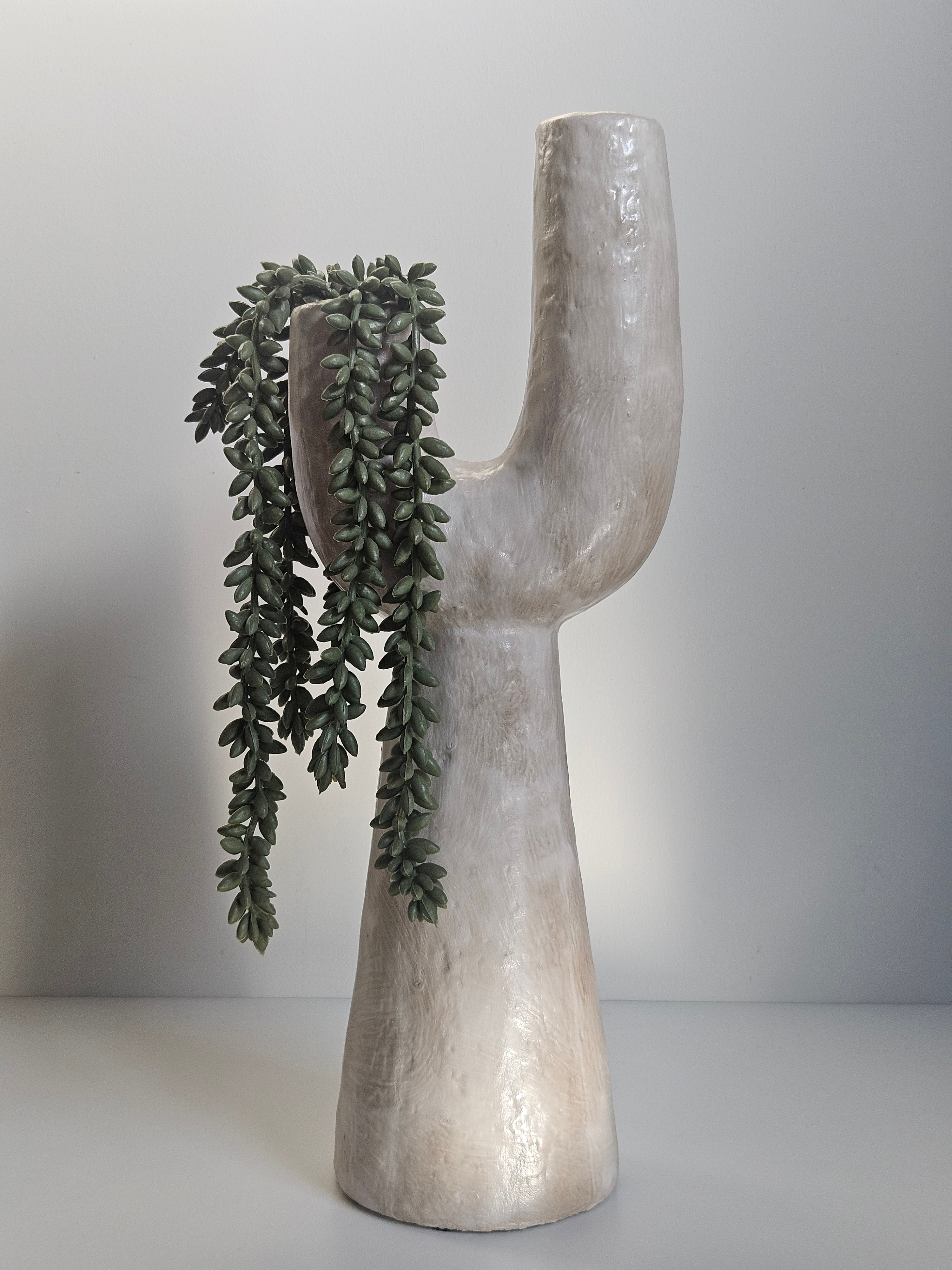 Vaas Organisch U-vorm Beige Aardewerk - H 36 cm