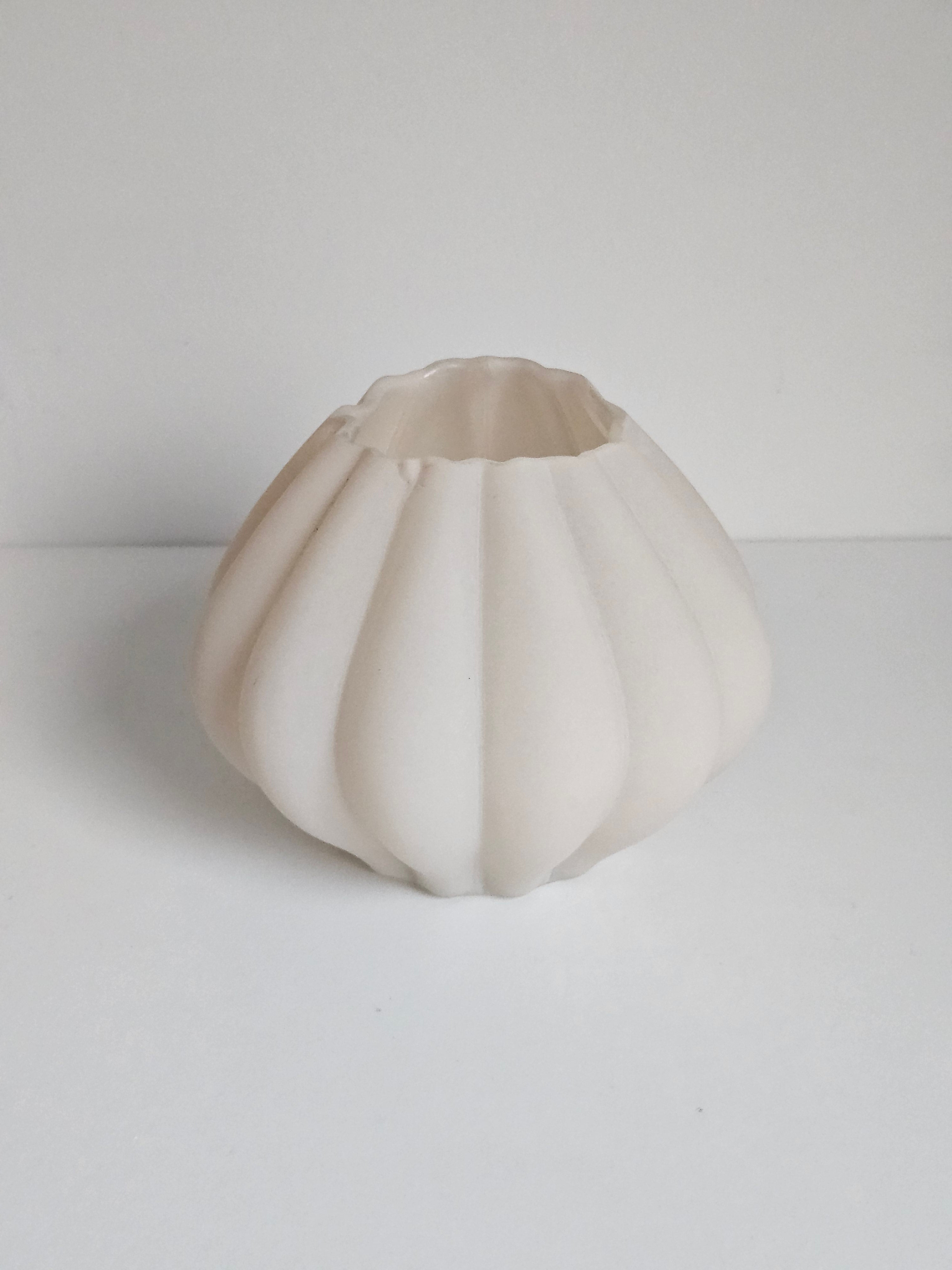 Vaas Ribbeltextuur Beige Glas - Ø 14 x H 11 cm