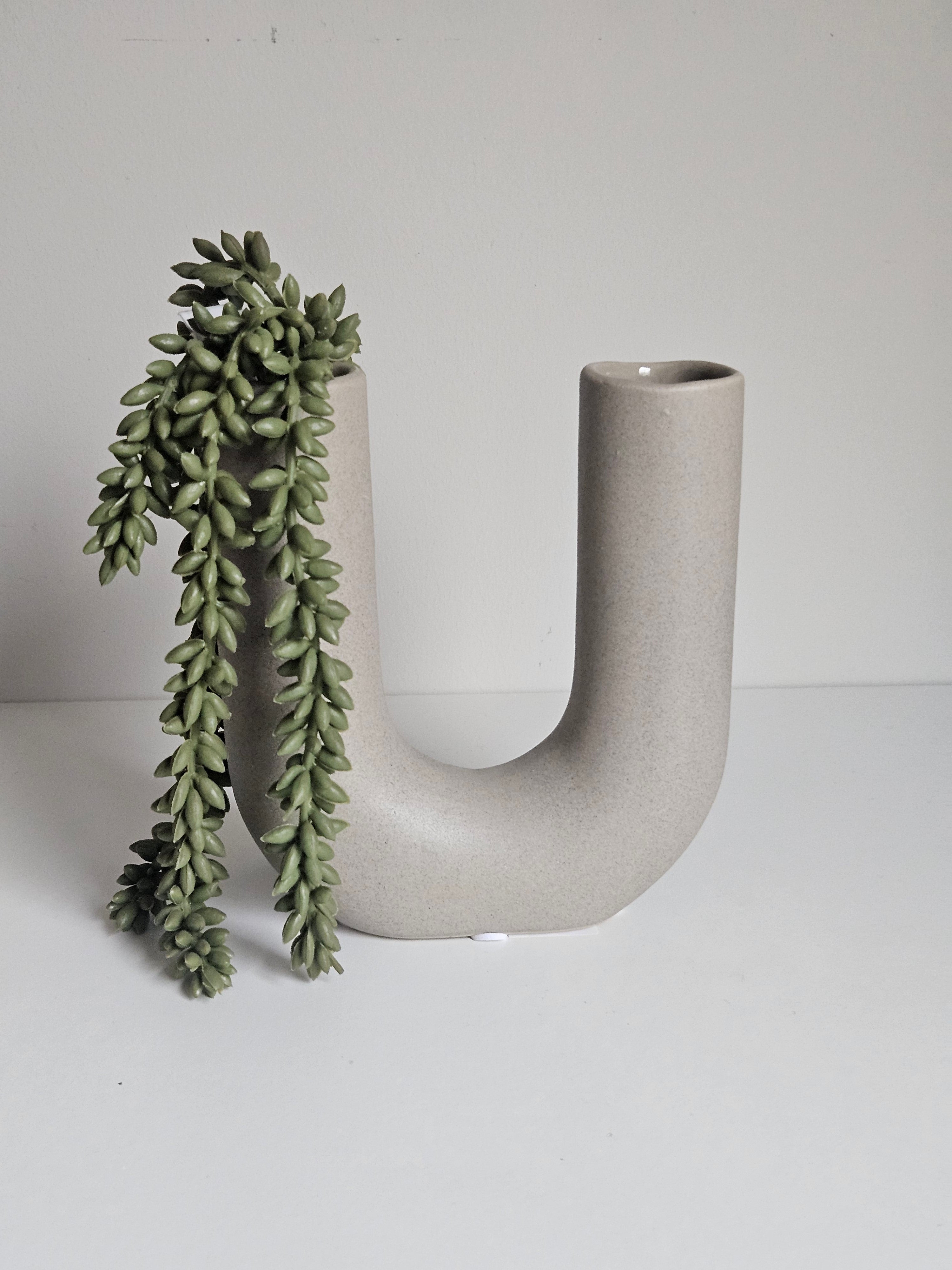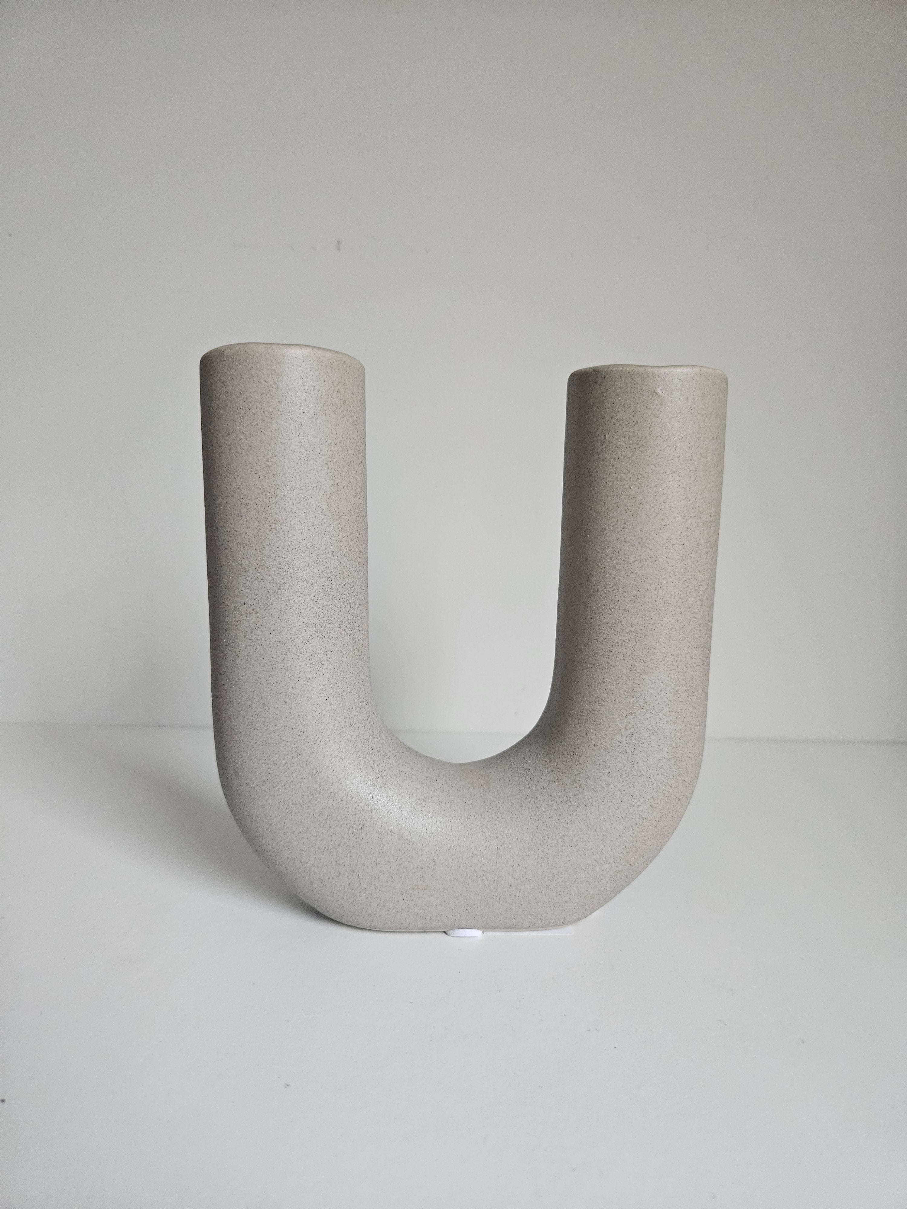 Vaas U Vorm Grijs Aardewerk - H 16 cm