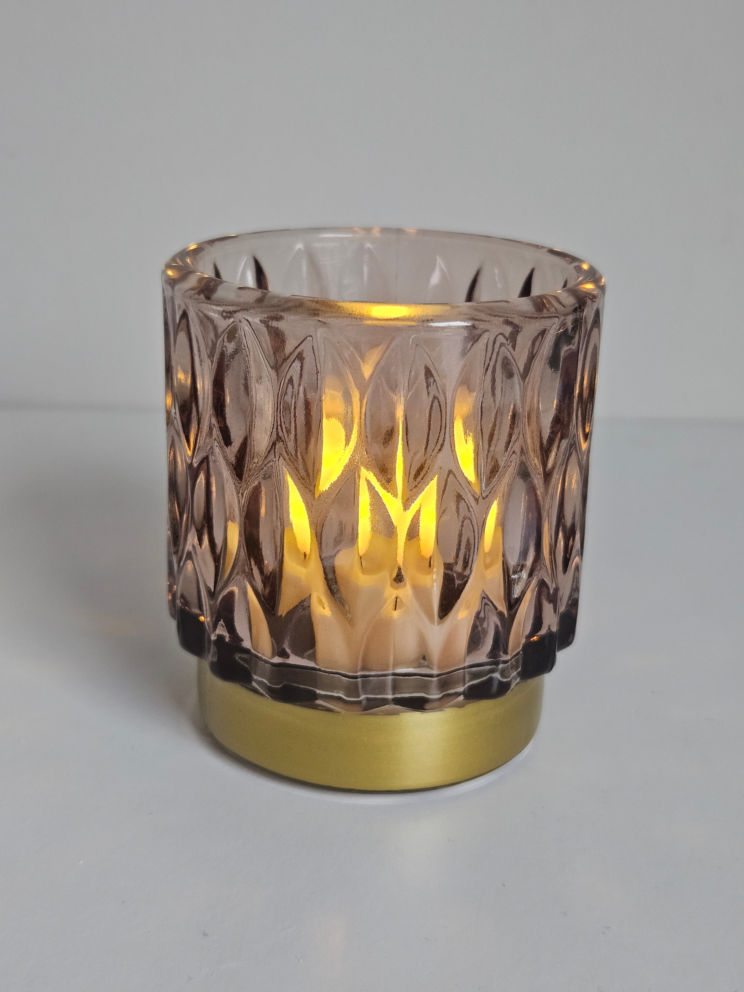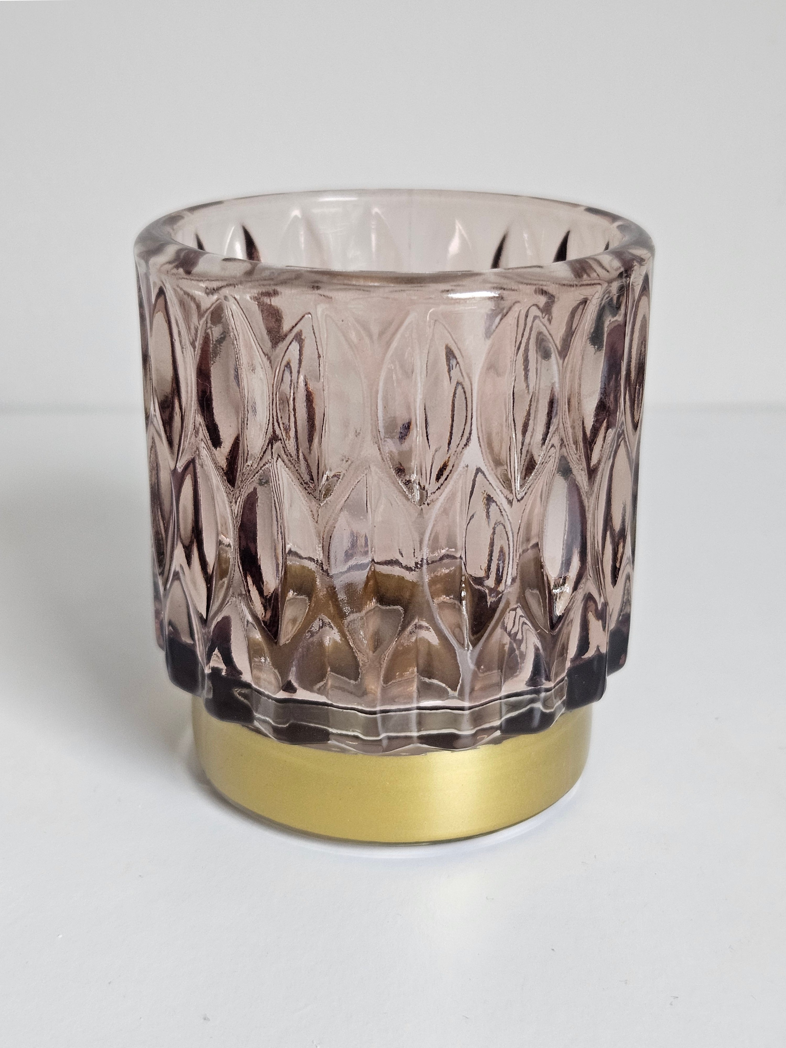 Waxinelichthouder Roze Glas Gouden Voet - Ø 7 cm
